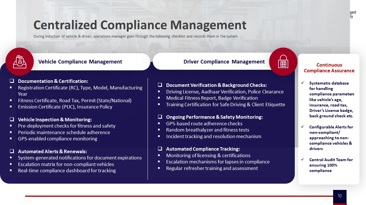 - Compliance and safety frameworks covering driver vetting, women-centric night routing, and audit trail integrity.