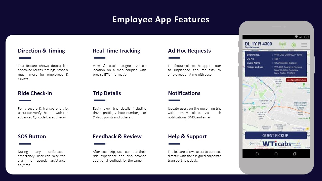 Employee apps show updated ETAs, driver details, and SOS options, and complaint closure SLAs ensure riders see issues resolved rather than ignored.
