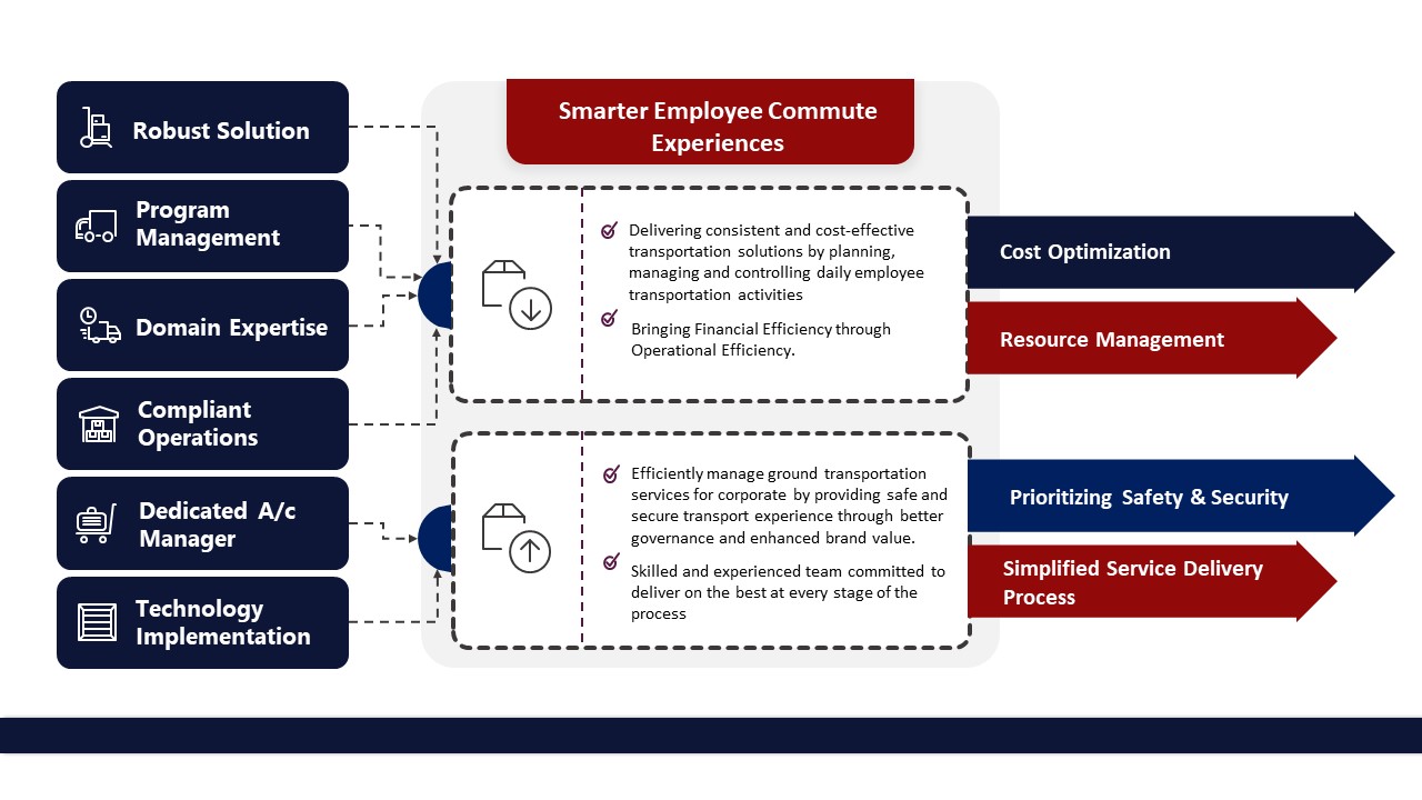 A senior leader can align HR and Finance by agreeing a small set of shared KPIs. Examples are OTP%, average ride time by route type, complaint rate, trip‑fill ratio, and cost per employee trip. The command center and dashboards described in the collateral show how reliability, safety alerts, and utilization can be monitored together, with escalation matrices and BCP plans handling disruptions before they become HR incidents or Finance surprises.